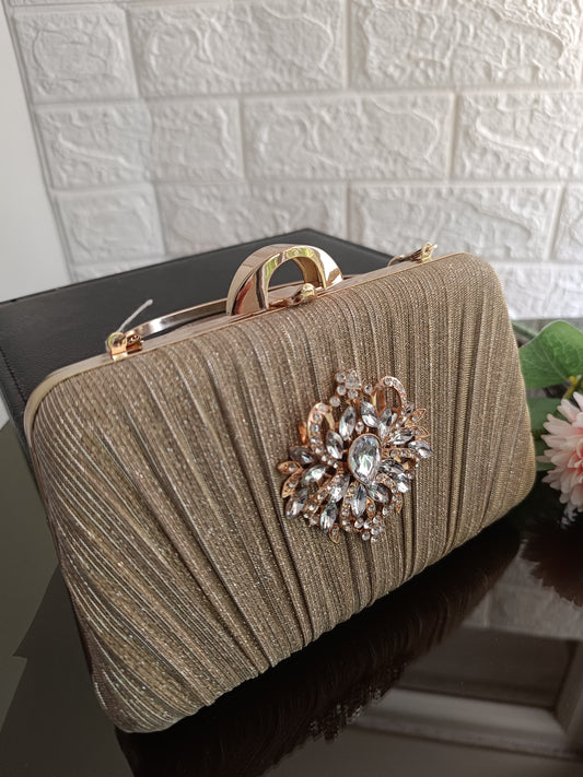 Golden Crystal Rhinestone Box Clutch (CP003)