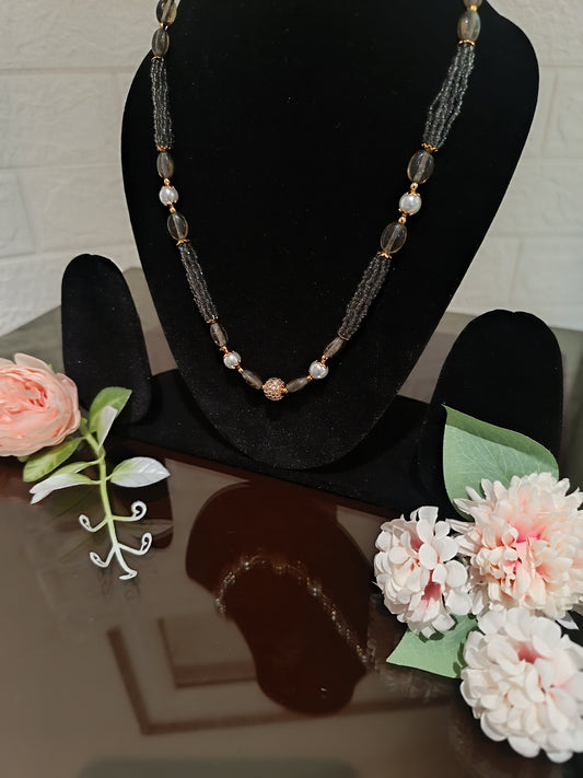 Black Crysal Beads and Pearl Necklace (AJ011)