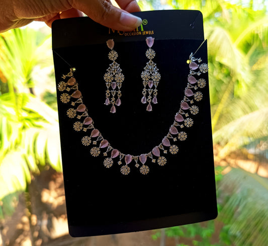 American Diamond Square Stone Choker with Ear Studs (AJ006)