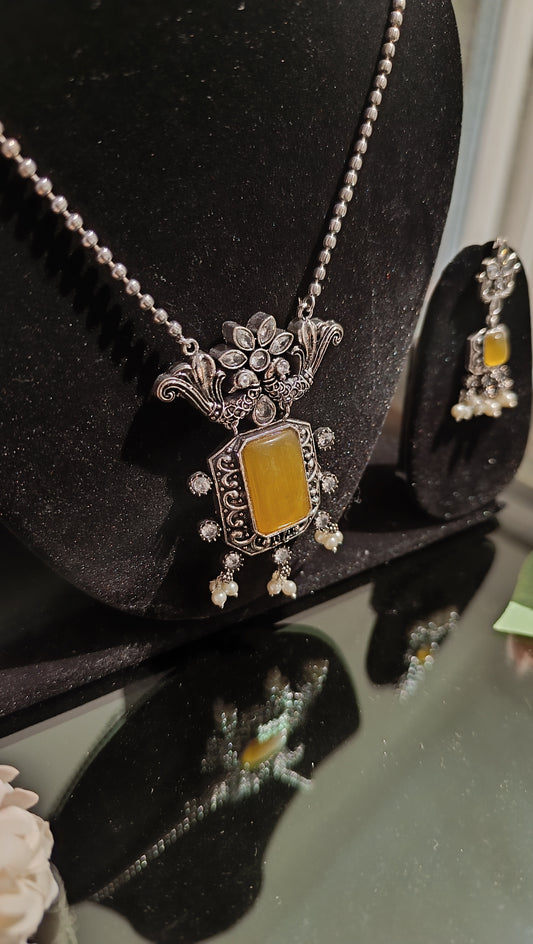 Yellow Stone Oxidised Necklace Set (AJ008)